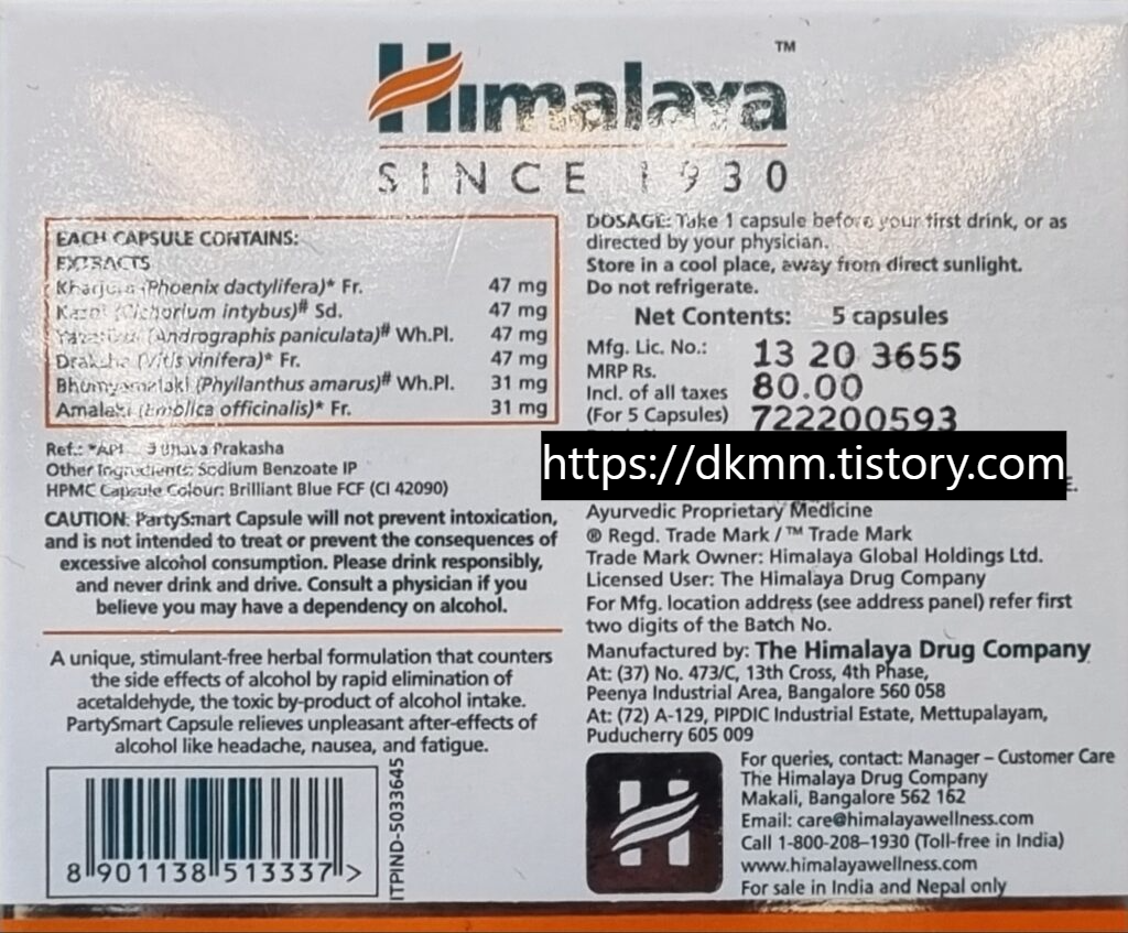 히말라야 숙취해소제 파티스마트 정보, 성분, 복용법과 주관적 사용 후기 본문